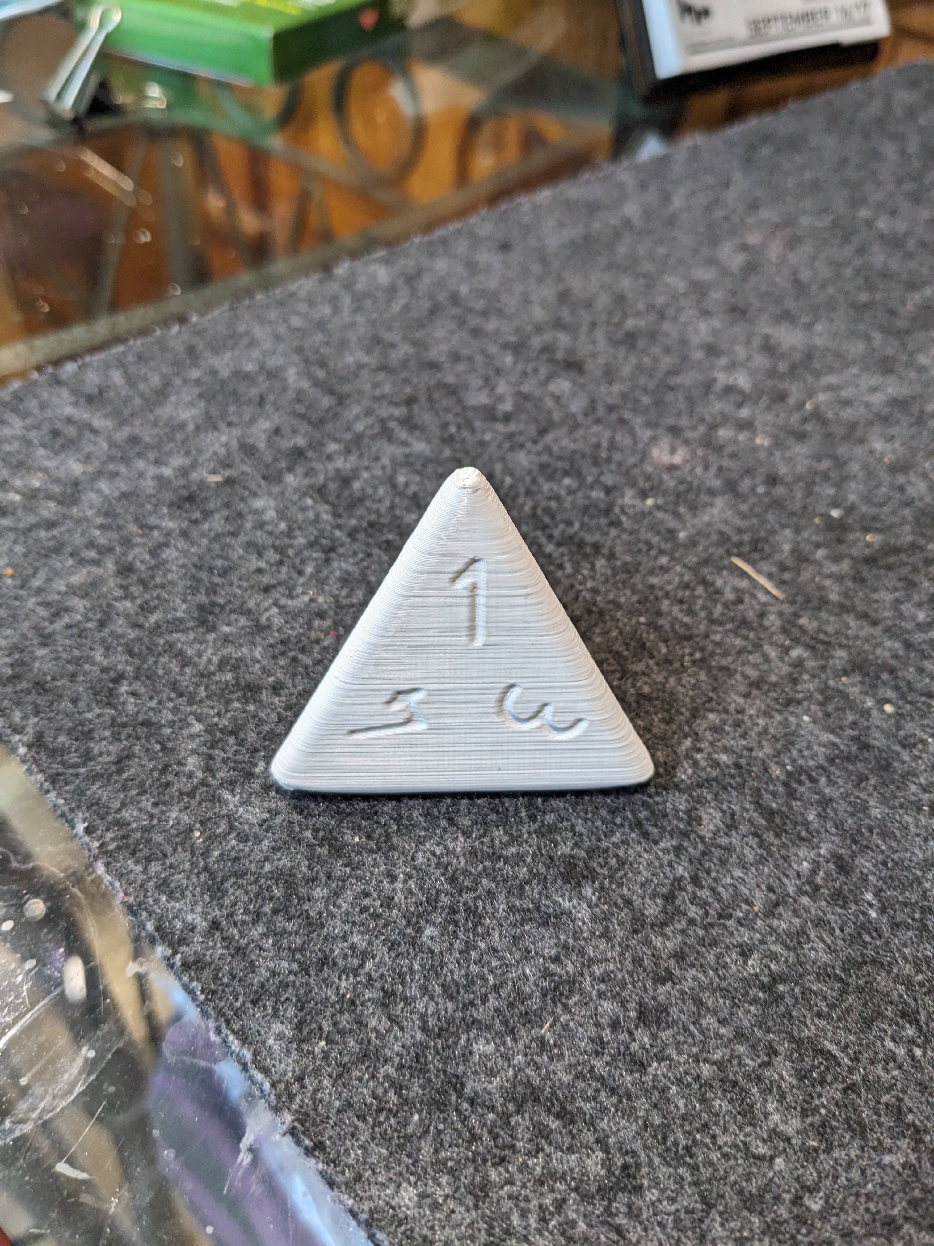 I play D&D regularly, and I thought it would be a riot to play with some larger dice. This is just a racquetball-sized D4, but I've printed a basketball-sized D20, too!