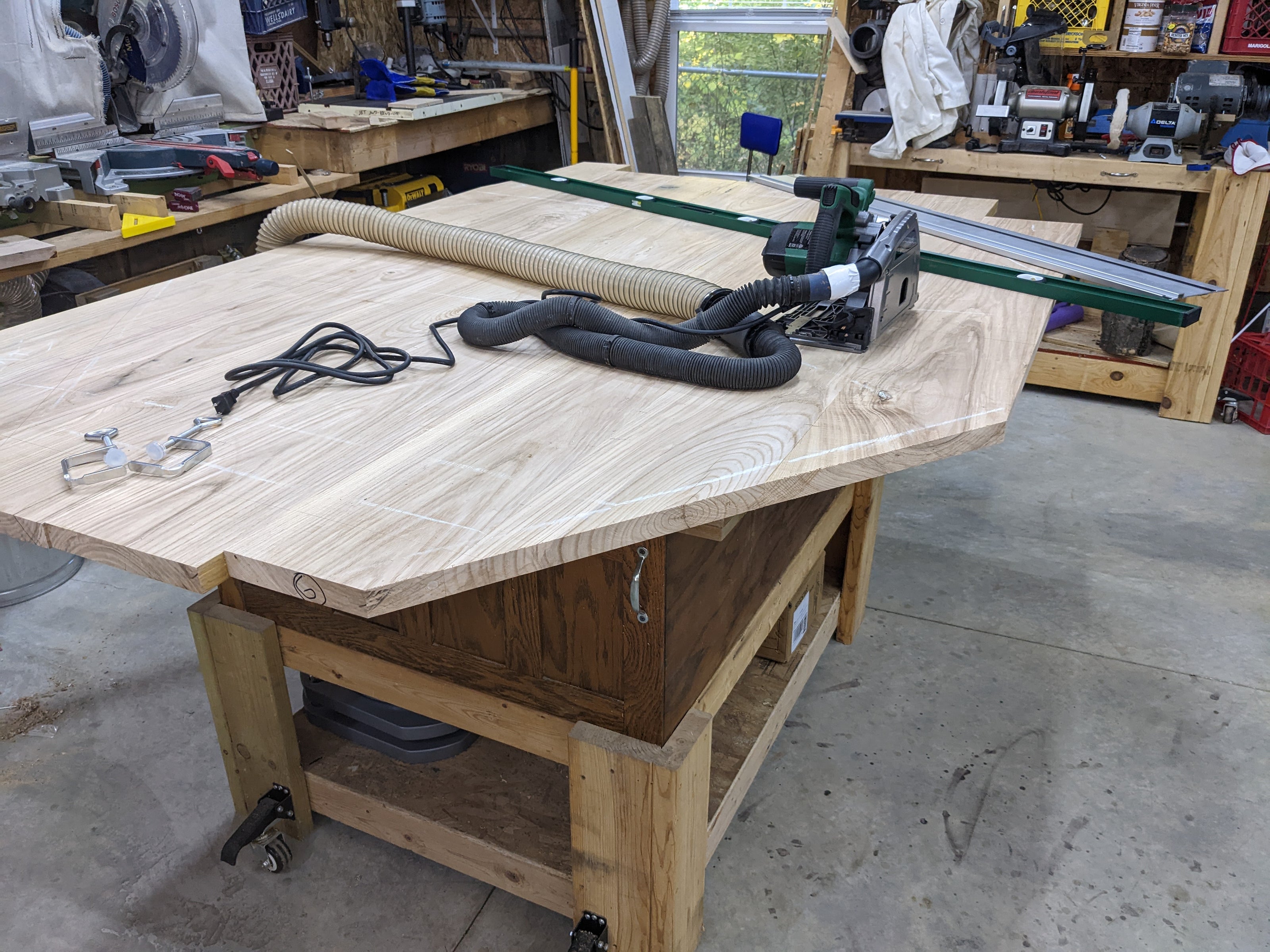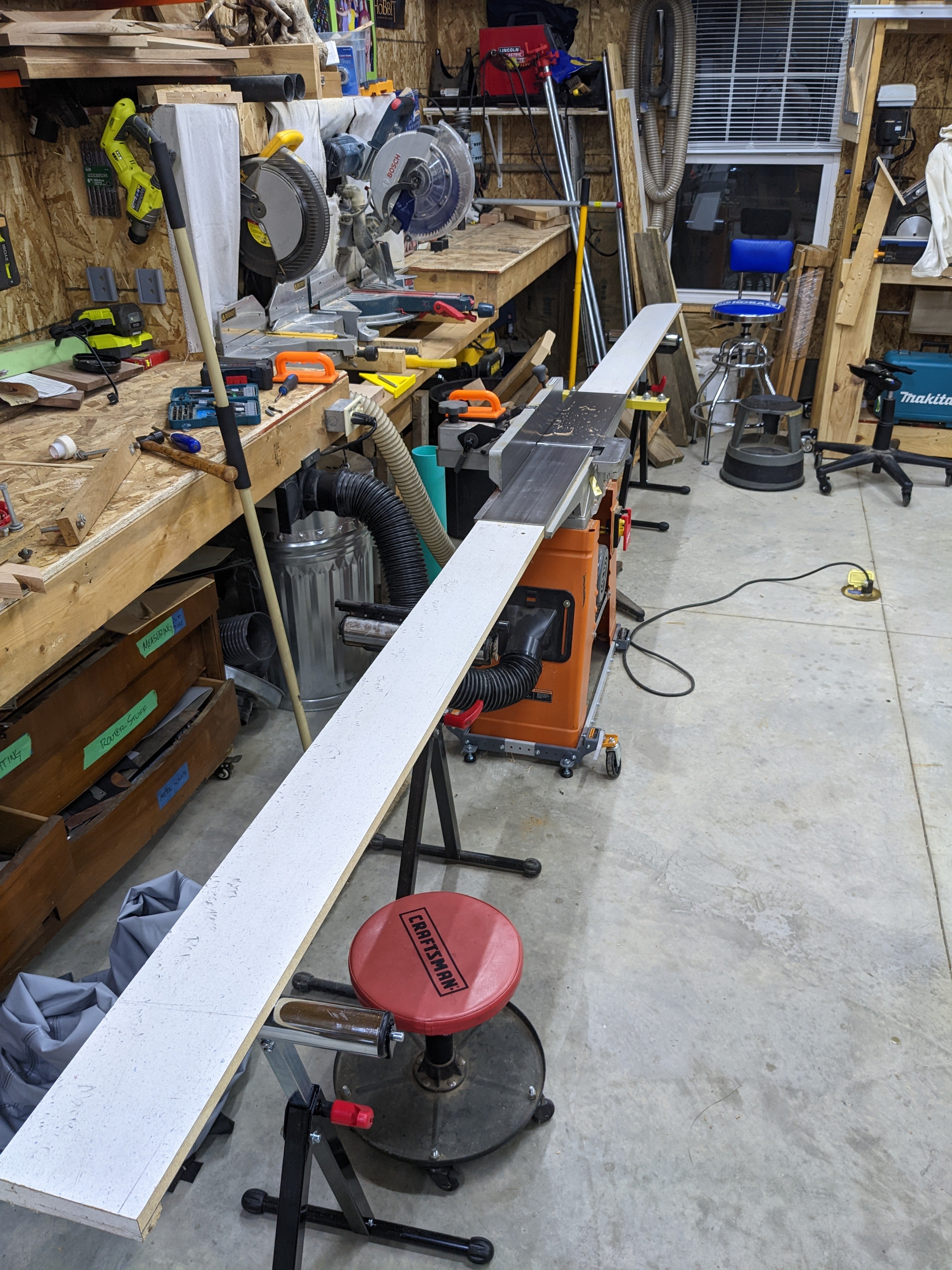 Turning rough-sawn lumber into square and dimensioned boards takes a lot of work and a lot of space in the shop. I added these extensions to the jointer to help keep things level.