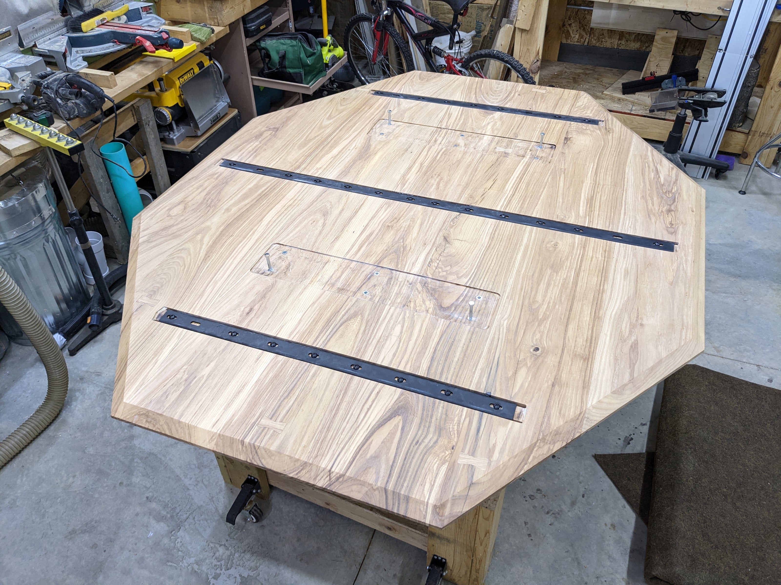 These 3 rails add a mountain of strength across the width of the table.Bottom stiffening rails installe