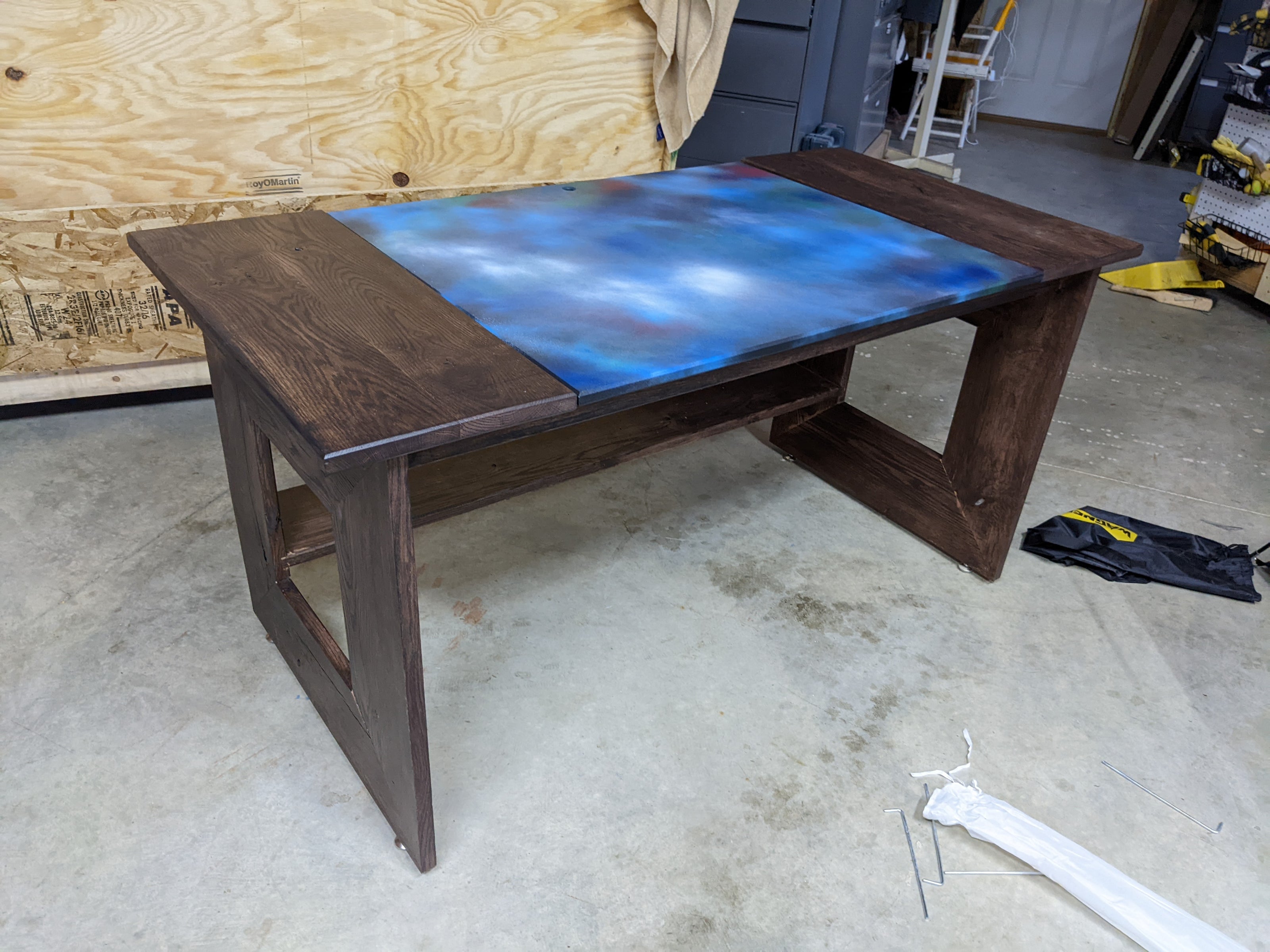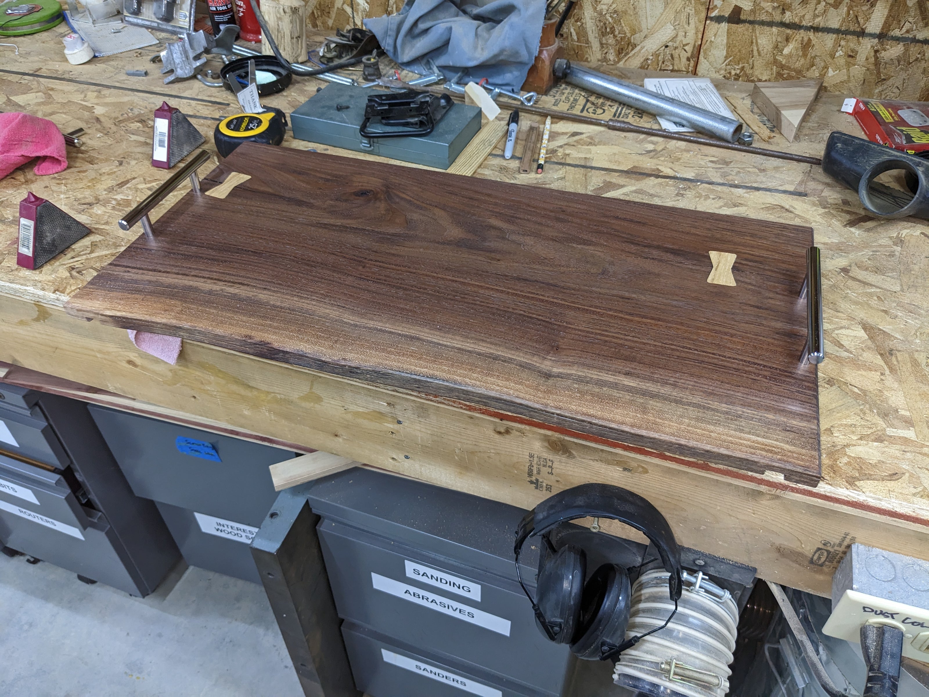 Made from a walnut slab and maple bowties so the slab didn't continue to split.