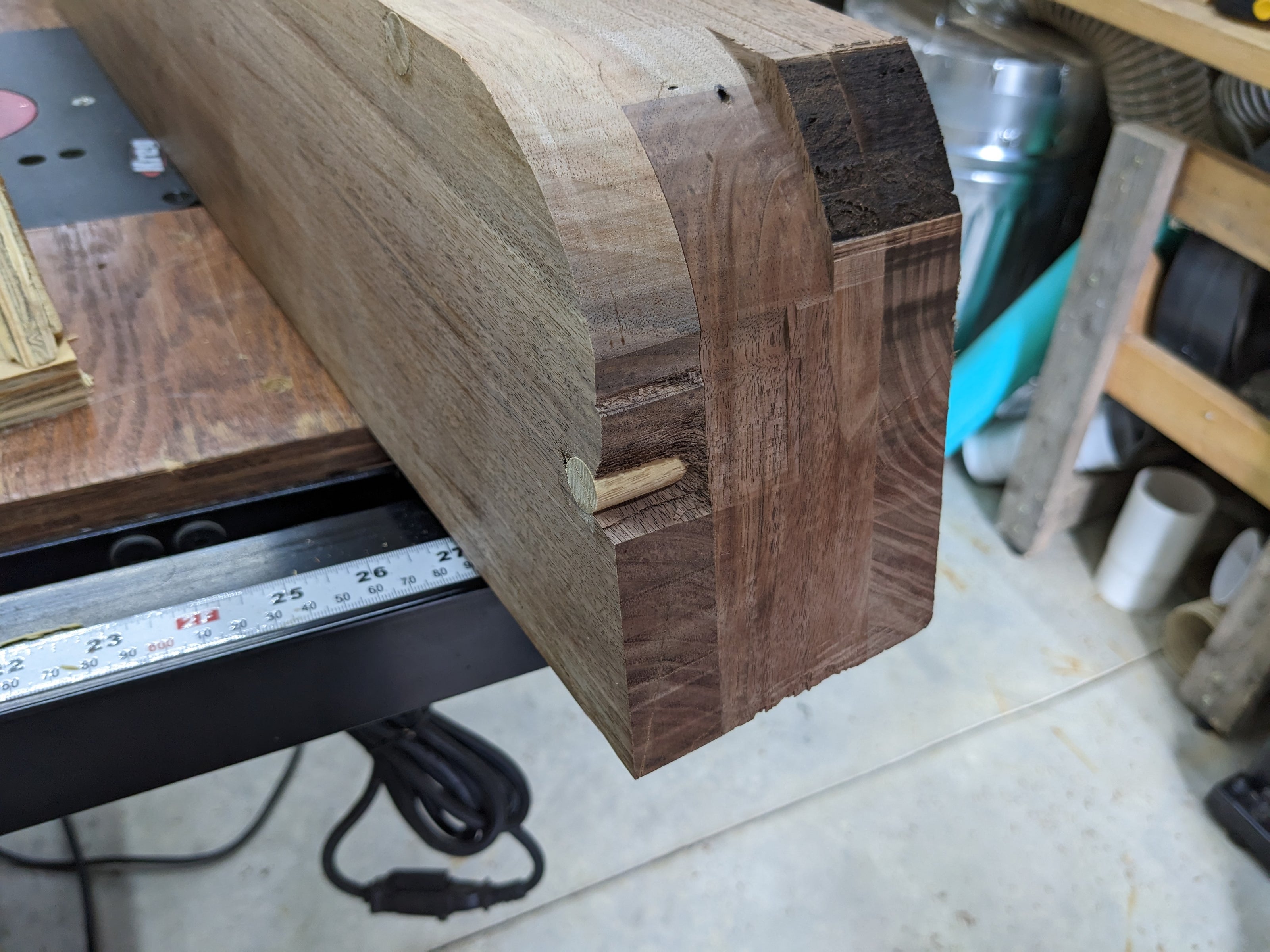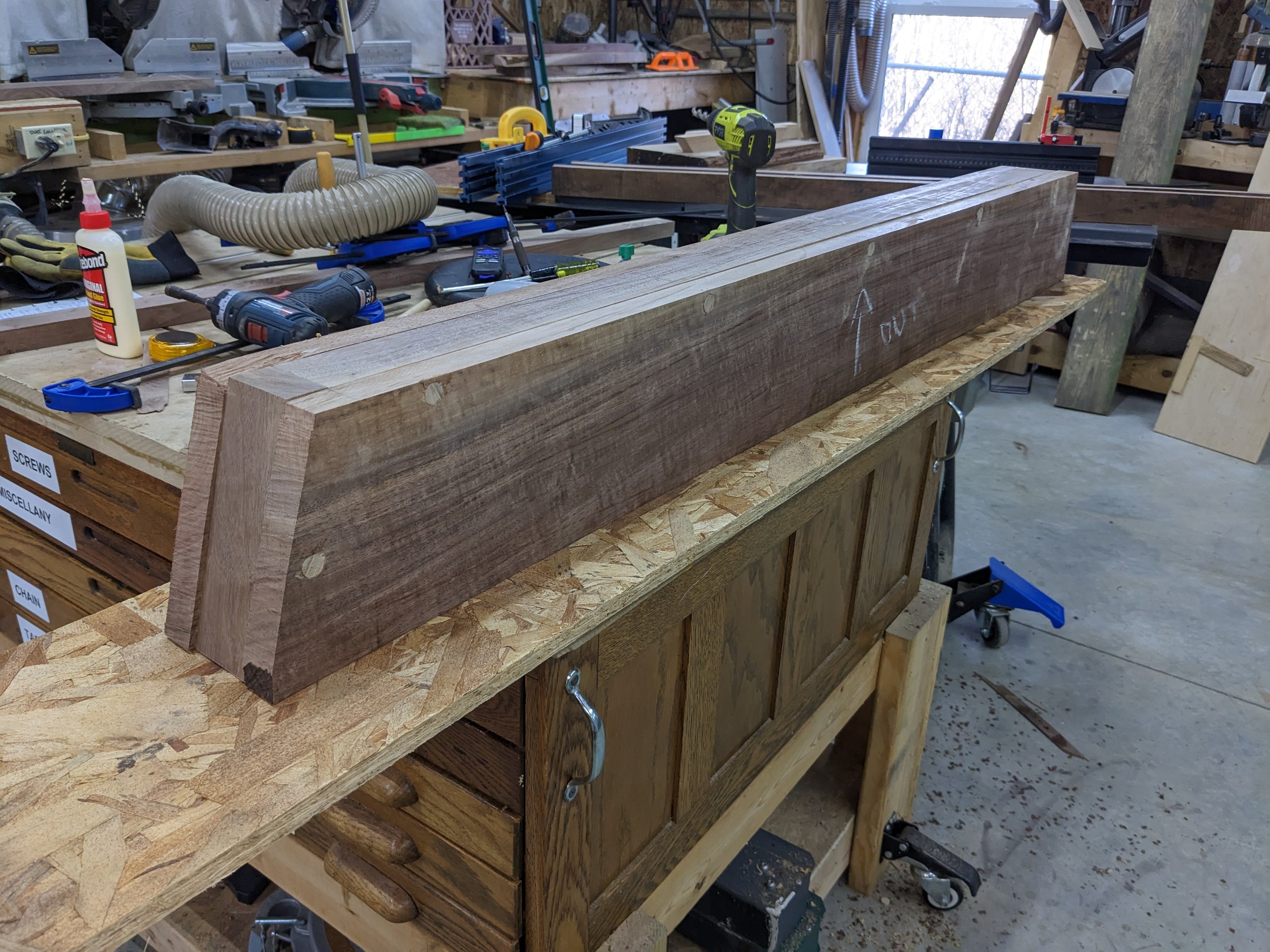 Oak pins run through the whole width to add strength and (hopefully) keep it from twisting too much.