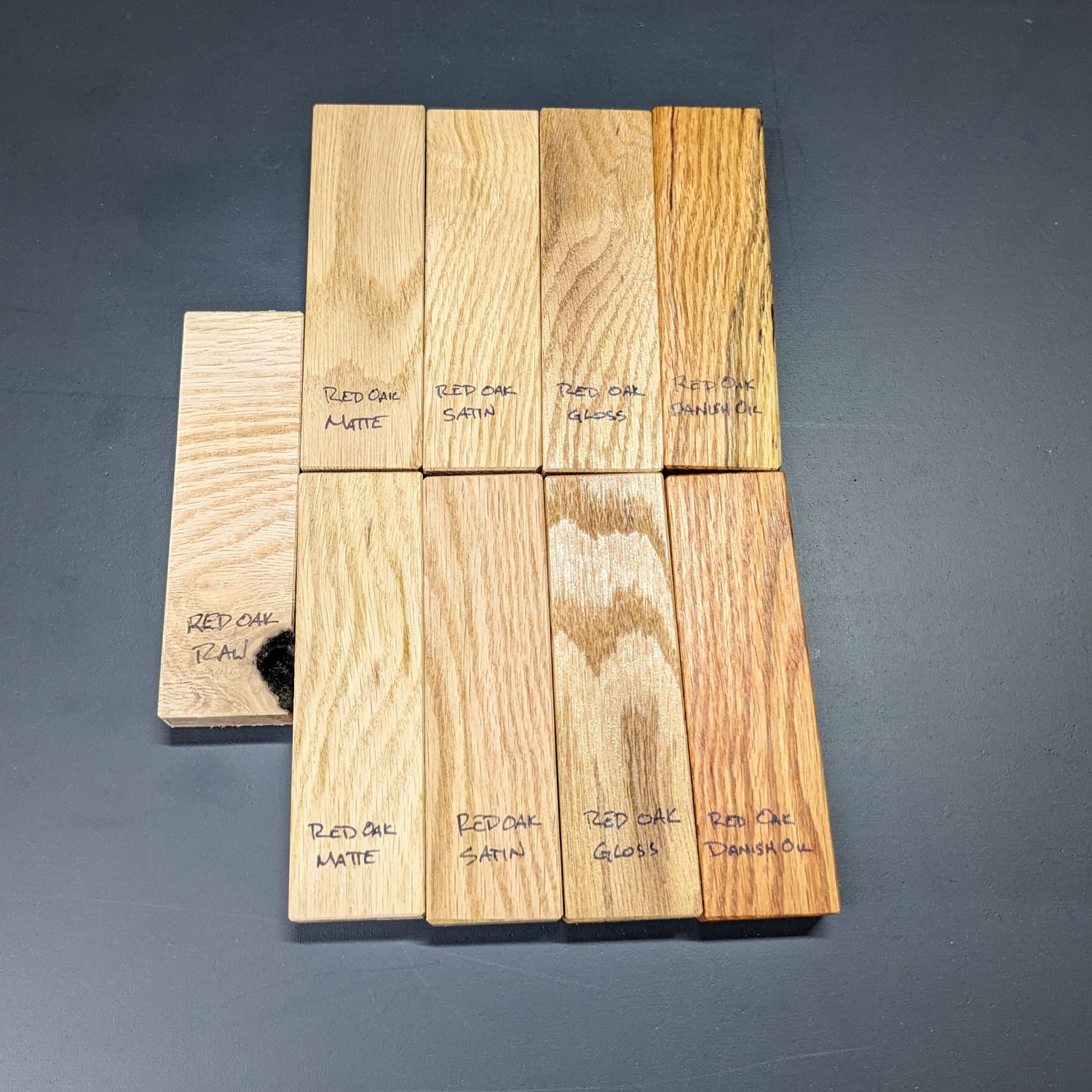 Red oak can look like a lot of different things. It can be very red or rather neutral. The color mellows slowly over time, too. These are samples from a variety of scraps in the shop.