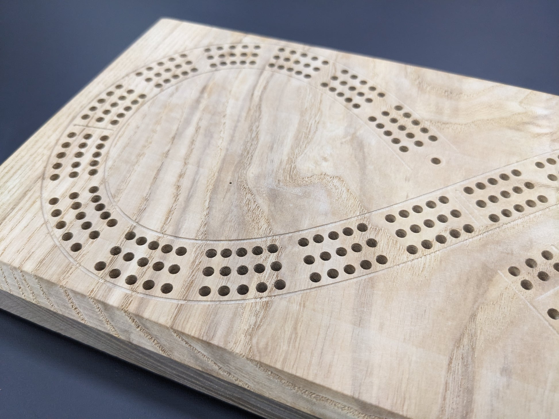 The board pictured is unfinished ash. Samples of available woods and finishes.